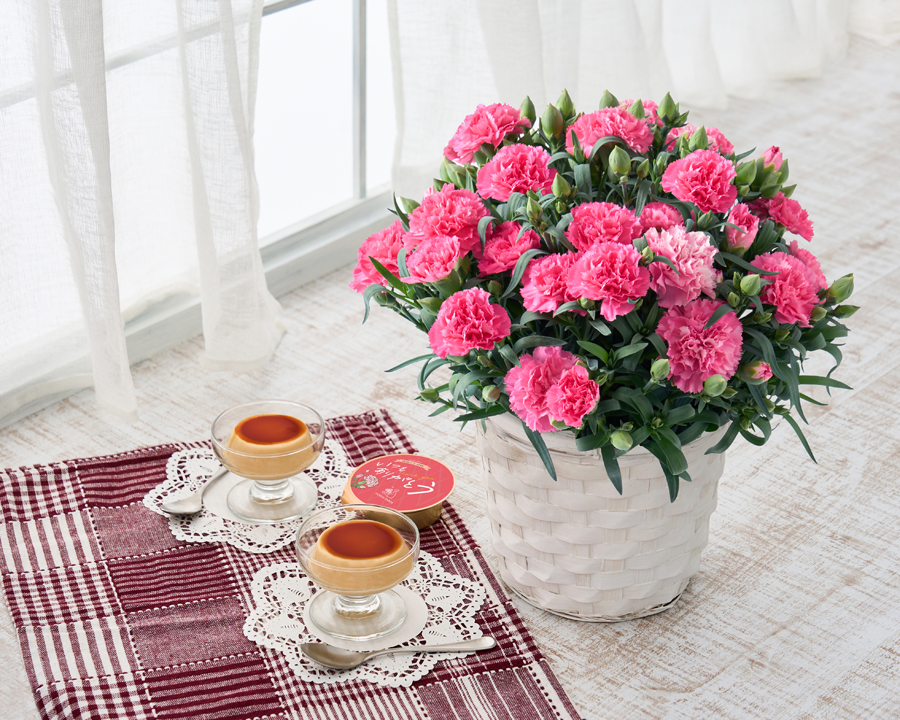 カーネーションとセットでお届けします。