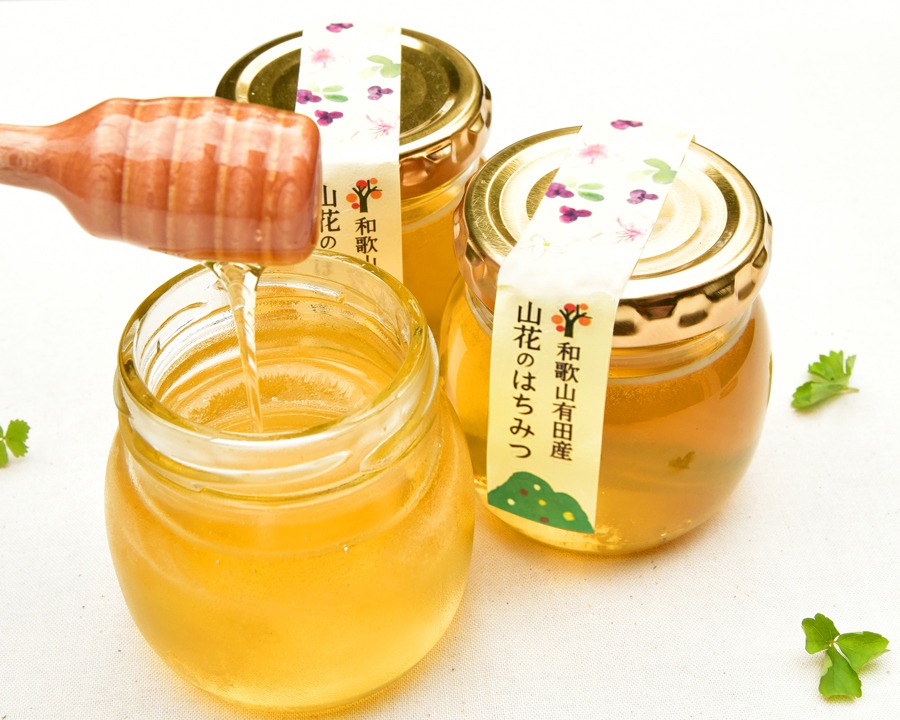 和歌山・有田の山花で咲いていた花から採れた純粋生蜜。様々な花から採れた天然蜂蜜となっています。