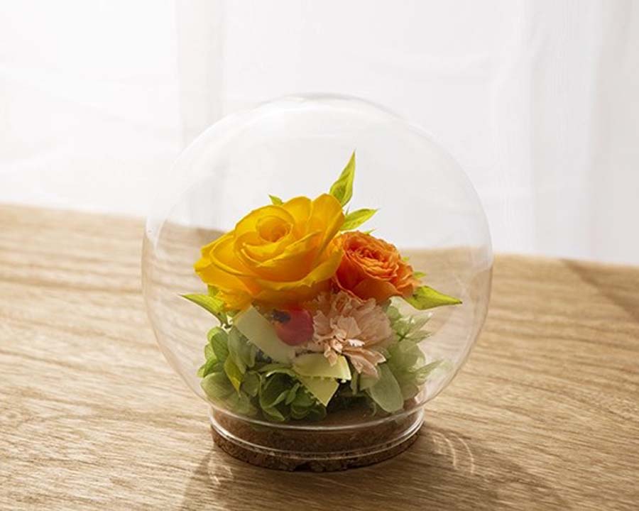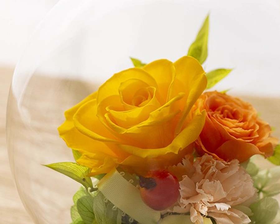 ガラスケースがホコリや水分、直射日光から花を守り、色鮮やかさをより長く保ちます。
