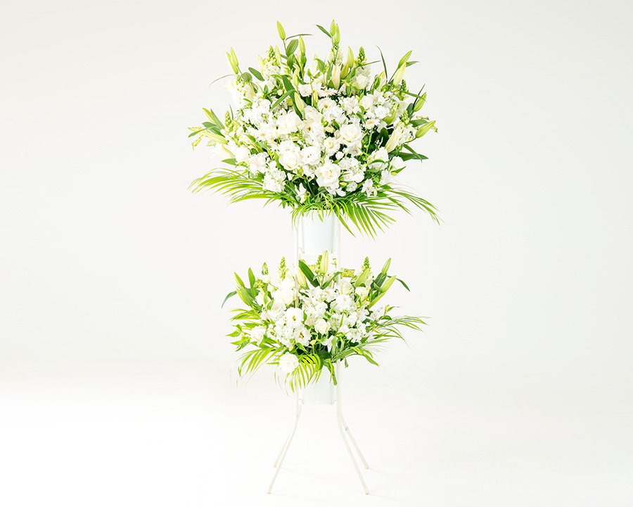 2万円で二段、白色のお祝い用スタンド花商品です。