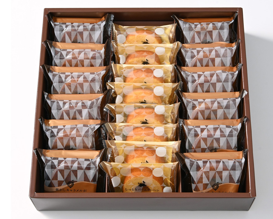 セット内容:焦がしキャラメルがしみ込んだバーム×12、しっとりバームクーヘン×8