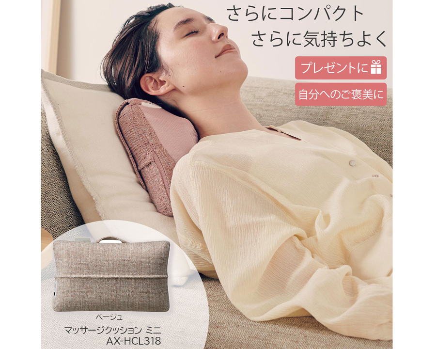 日々の疲れをやさしく癒してくれるコンパクトなマッサージクッションです。