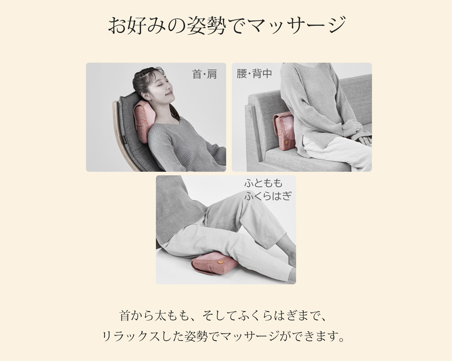 首・腰・背中など様々な部位にフィットし立体的なもみ心地で、