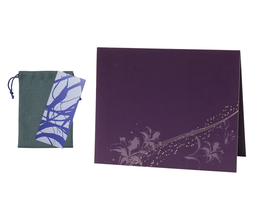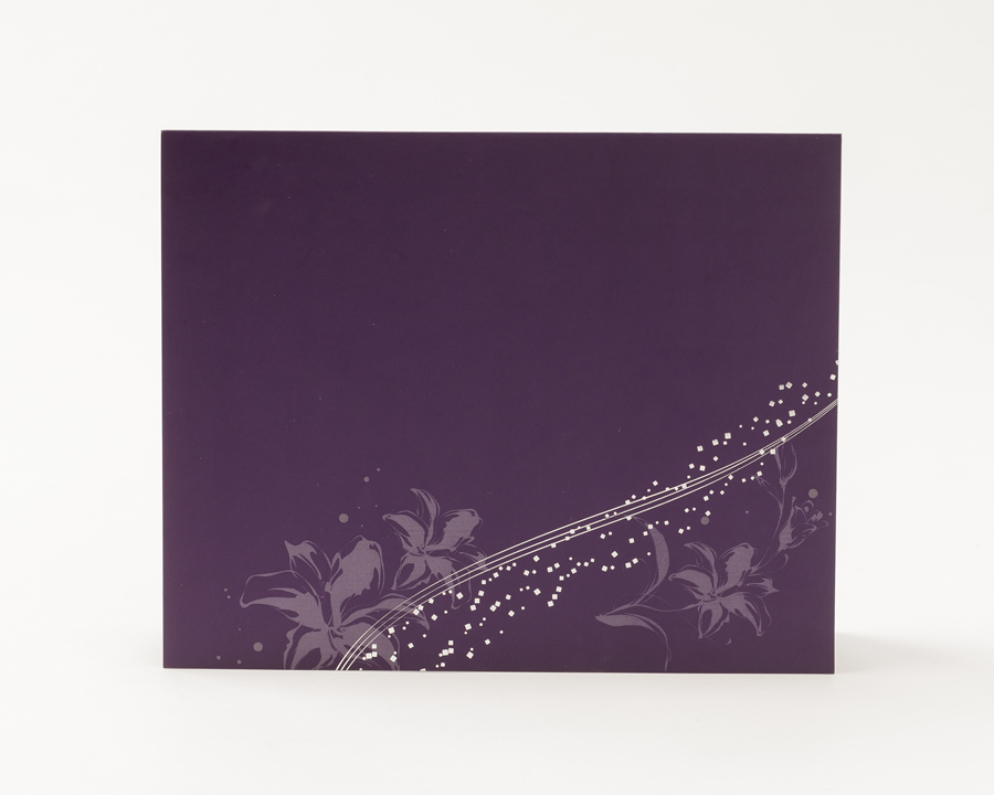 紫色の落ち着いた色味の台紙に百合のお花をあしらったデザインです。