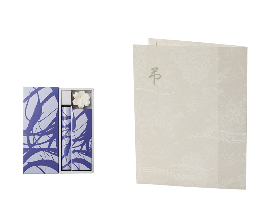 本商品はコシノジュンコ蝋燭・線香セットを台紙と一緒にお届けいたします。