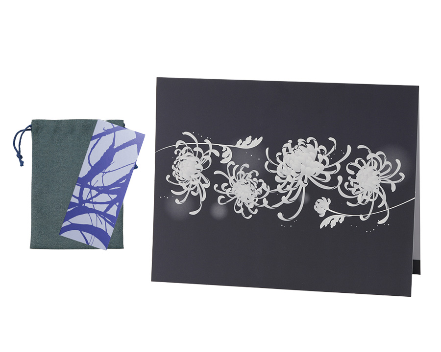 本商品は巾着とコシノジュンコ蝋燭・線香セットを台紙と一緒にお届けいたします。