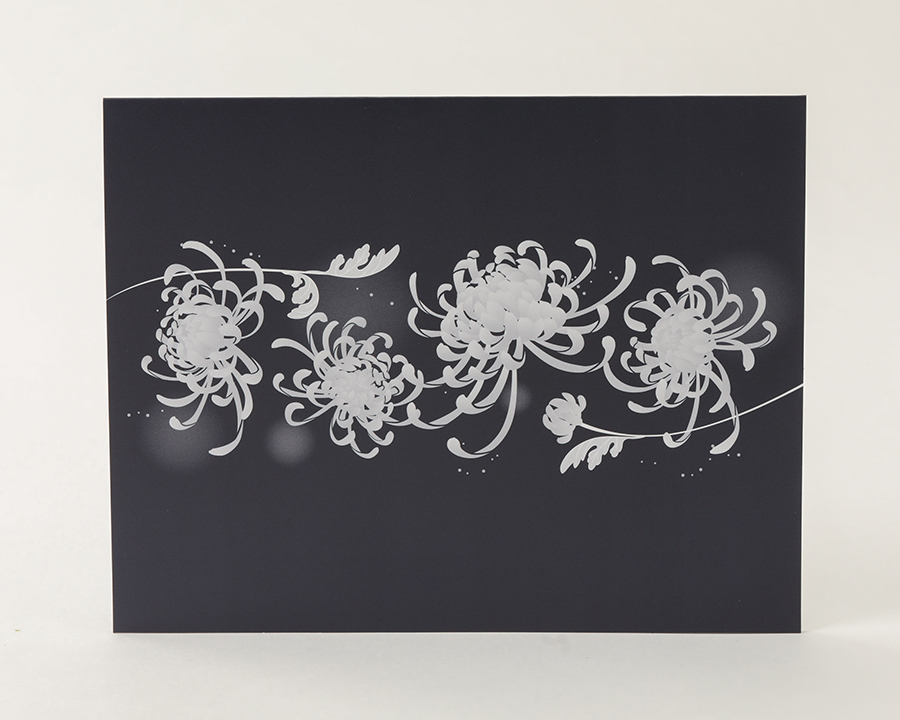 落ち着いた色味のお台紙に流れるような菊のお花が想いを大切な方のもとまで届けてくれます。