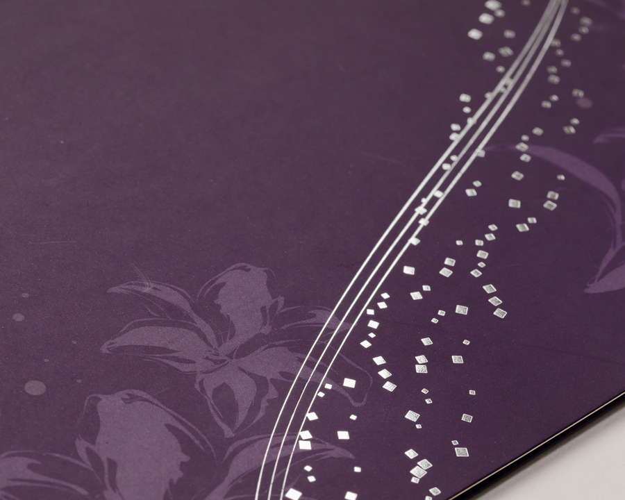 紫色の落ち着いた色味の台紙に百合のお花をあしらったデザインです。