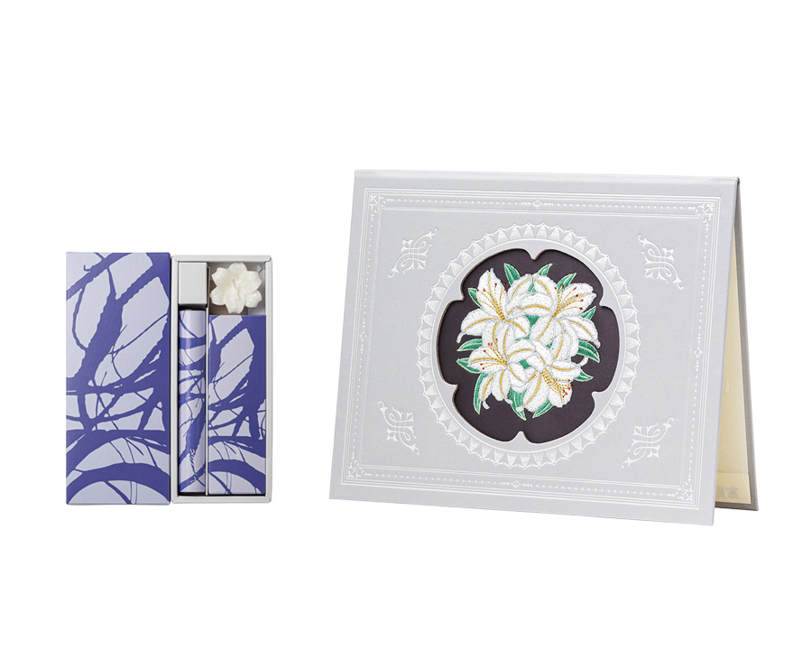 刺繍 白ゆり[蝋燭線香・巾着付]