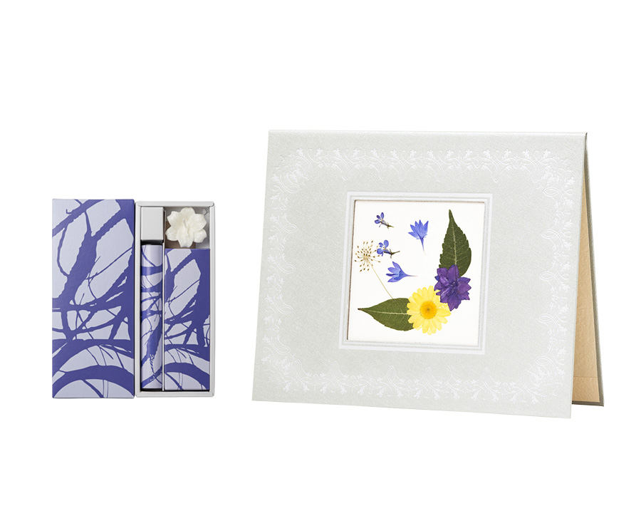 本商品はコシノジュンコ蝋燭・線香セットを台紙と一緒にお届けいたします。