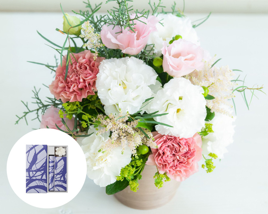 プロにおまかせアレンジメント 淡い色入り S[蝋燭線香・巾着付]