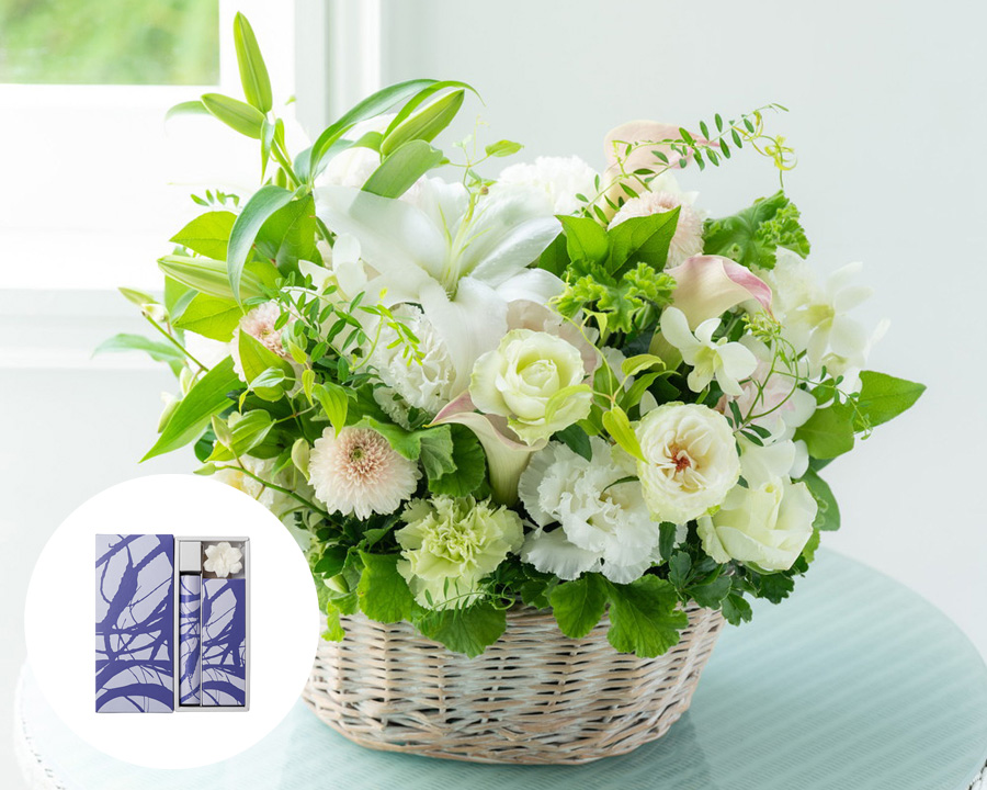 プロにおまかせアレンジメント 白上がり L[線香・巾着付]