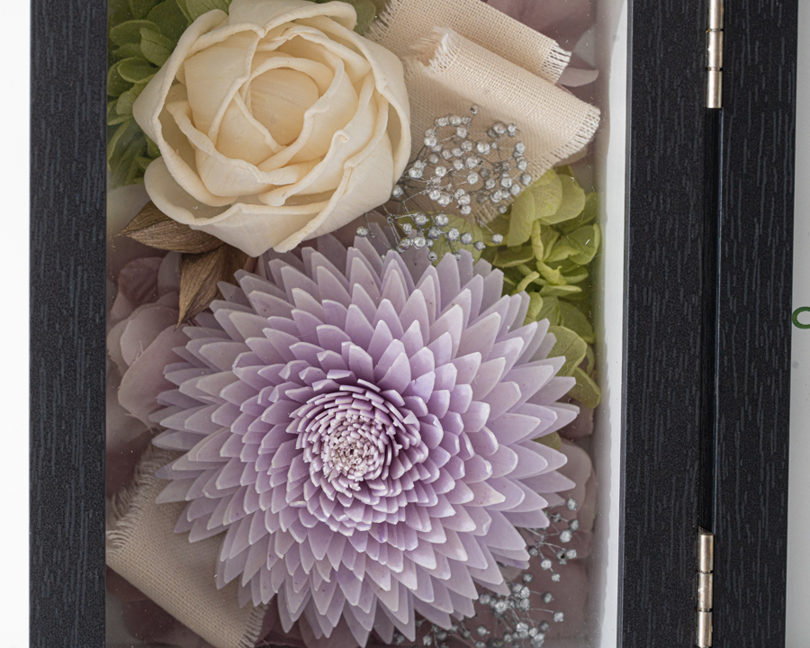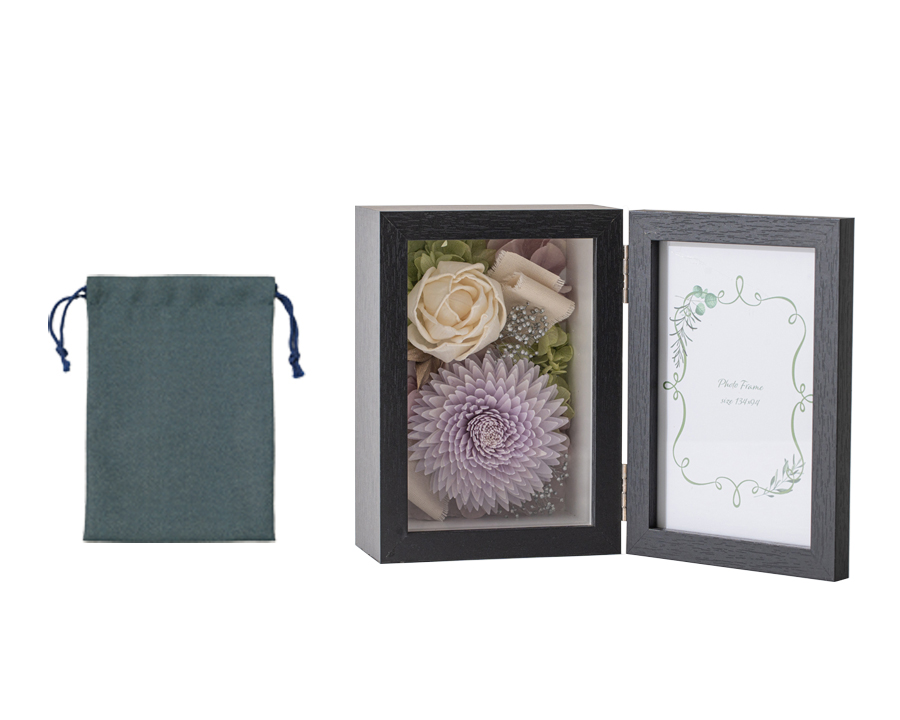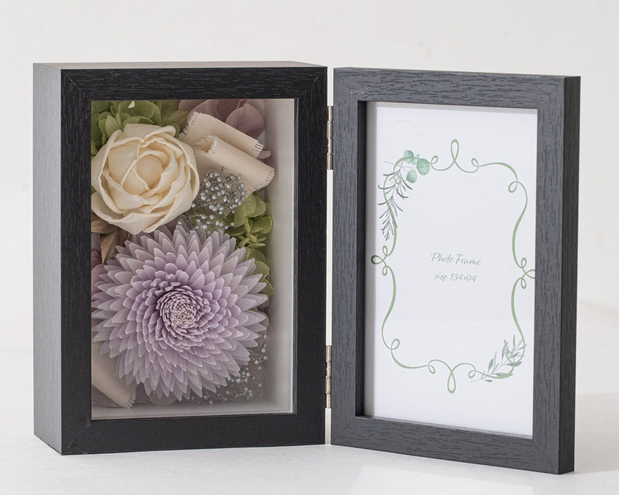 片面にフラワーアレンジメント、片面にフォトフレームがペアになった商品です。