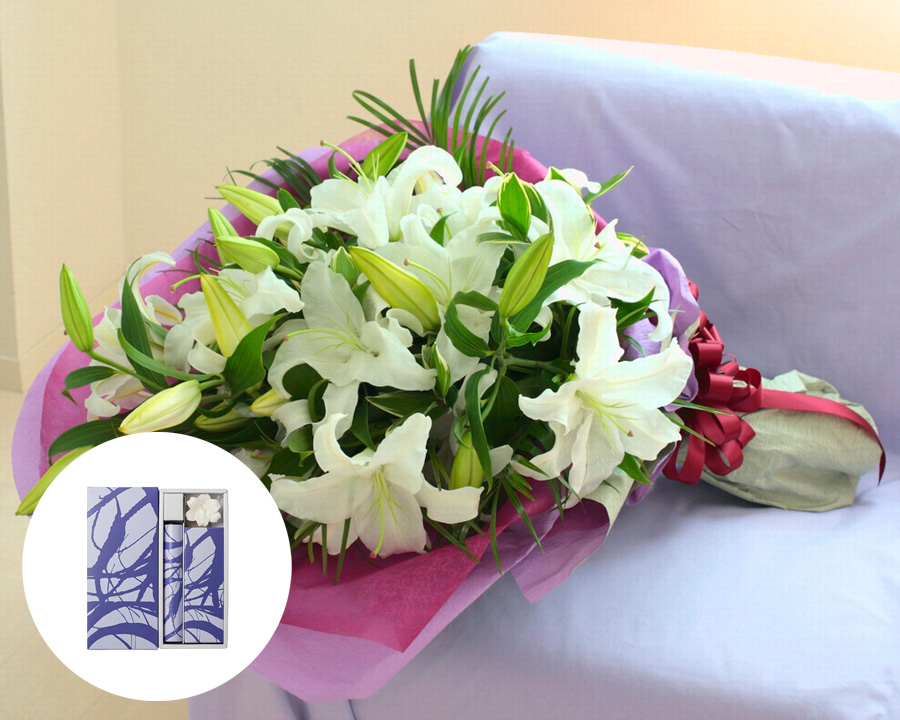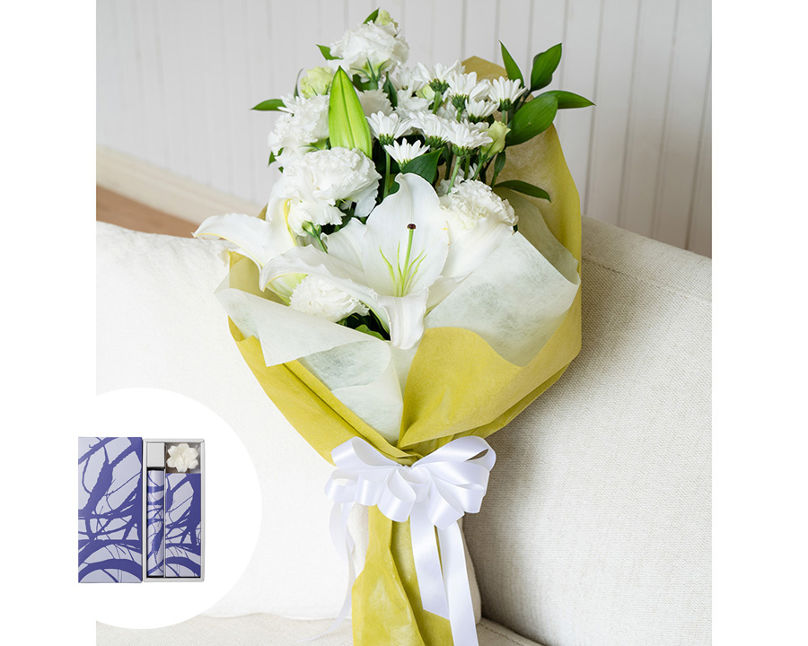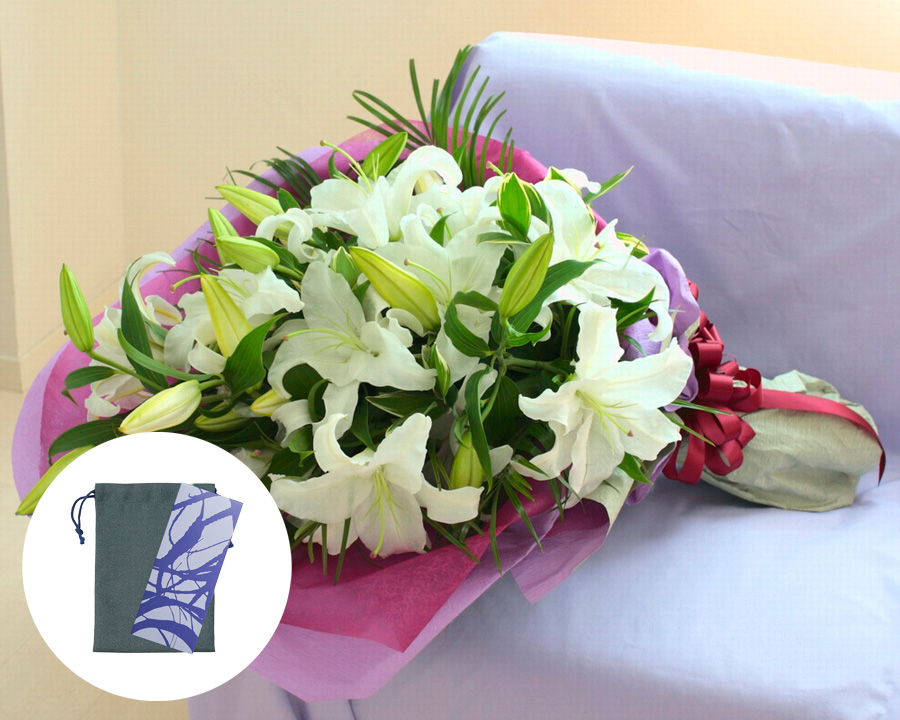 カサブランカの花束[巾着・コシノジュンコ蝋燭線香付]