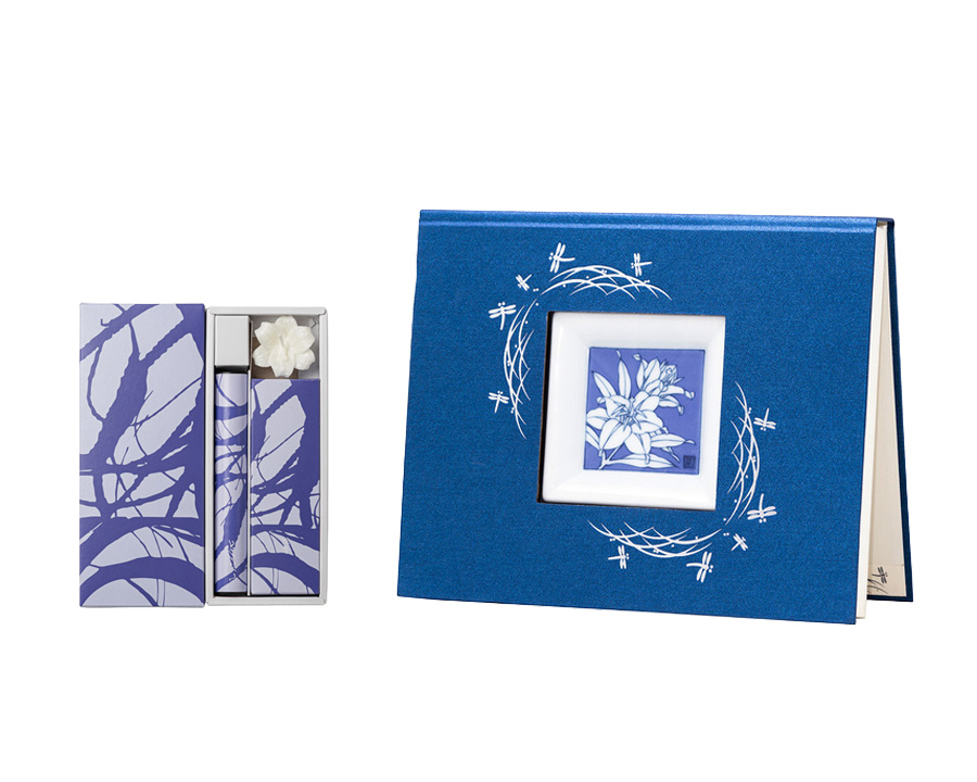 伊万里焼 青の花[蝋燭線香・巾着付]