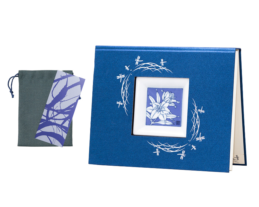伊万里焼 青の花[巾着・コシノジュンコ蝋燭線香付]